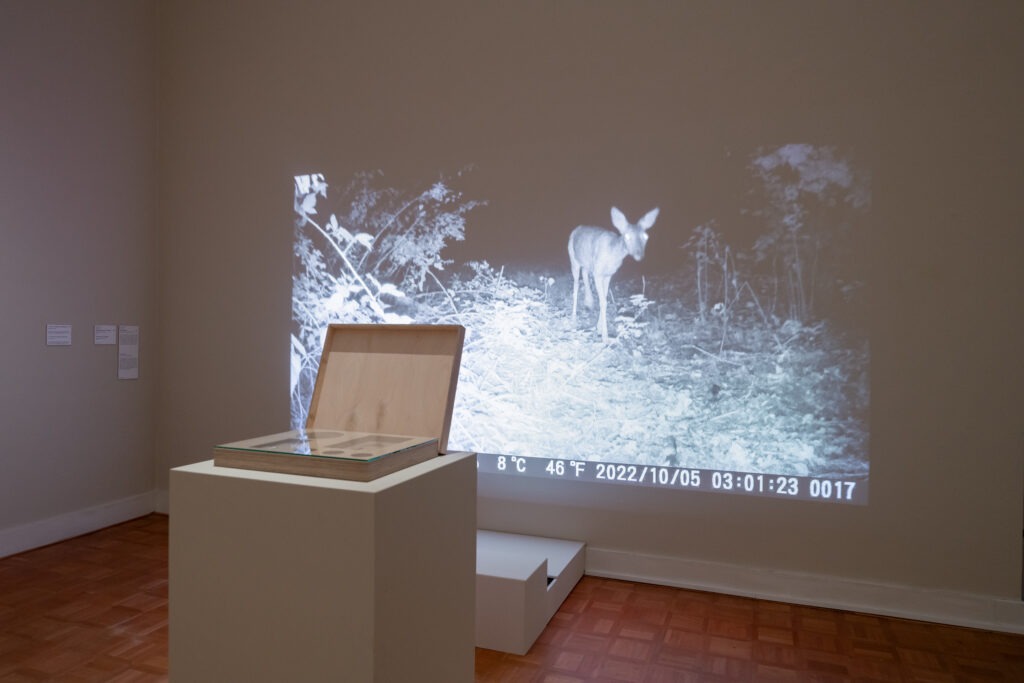 In de tentoonstelling waren meerdere werken van mijn hand te zien, waaronder het videowerk Medebeheerders: Op ’t Rentelen over medebeheerders — waarin dieren als actieve partners in het landschapsbeheer zichtbaar worden — en Hazenapotheek, een project dat voortkomt uit onderzoek naar het zelfgenezend gedrag van dieren.