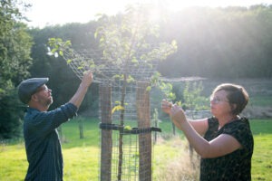 De oproep van de provincie Limburg eind 2020 voor pachters met een ander verhaal dan het reguliere agrarische gebruik kwam daarbij als een mooie kans. Sinds 2021 pachten we een stuk grond van de provincie waar we, door middel van crowdfunding, eind 2021 een aanplant van 32 stuks hoogstamfruitbomen en 400 stuks bosplantsoen hebben gedaan. Met deze aanplant is er een stukje cultuurlandschap teruggebracht; een hoogstamboomgaard, een mantelzoom vegetatie en een graft zijn blijvend aan het landschap toegevoegd. Met ecologisch beheer wordt de natuurwaarde verbeterd, de biodiversiteit van het grasland vergroot en de bestaande landschapselementen hersteld.