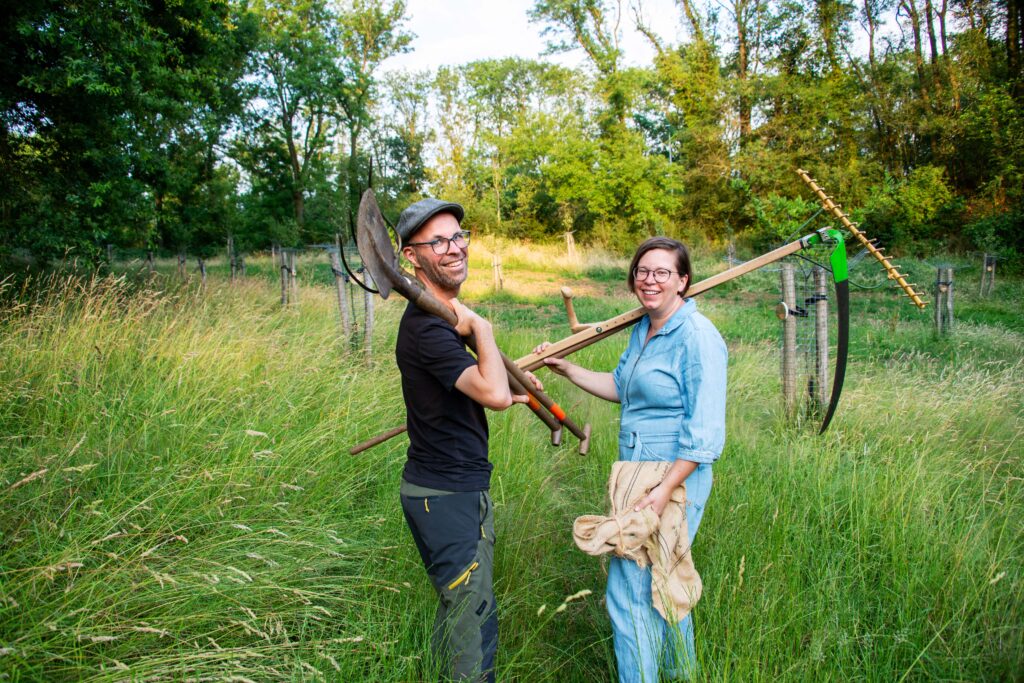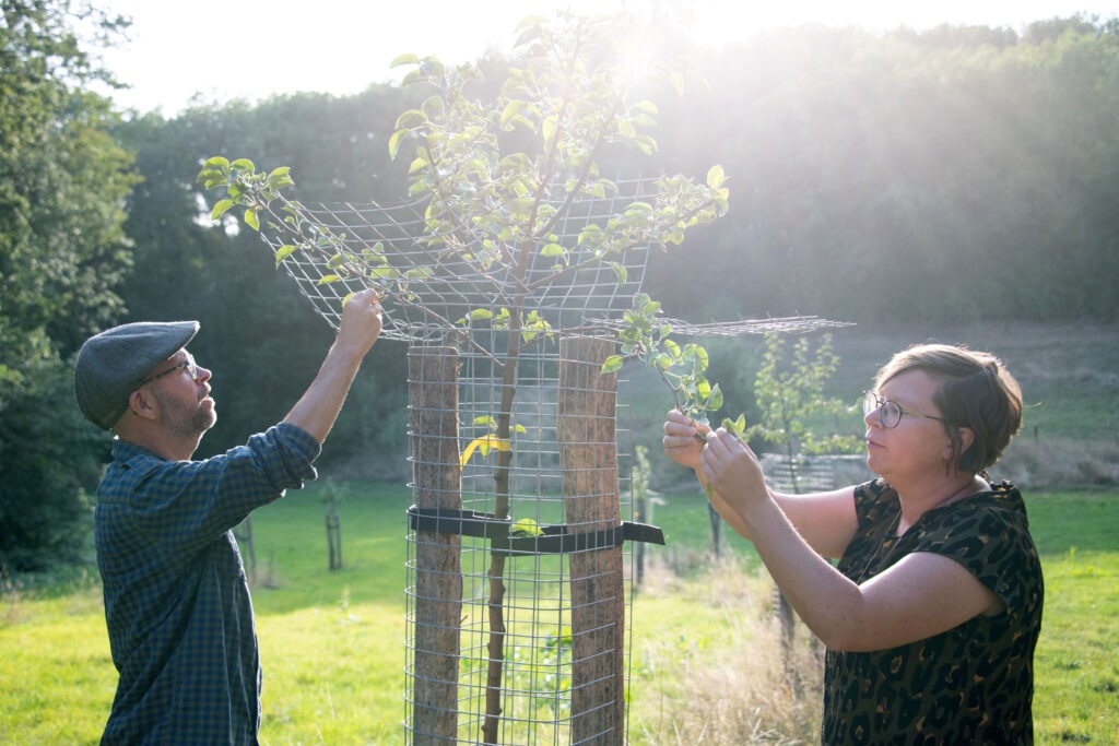 De oproep van de provincie Limburg eind 2020 voor pachters met een ander verhaal dan het reguliere agrarische gebruik kwam daarbij als een mooie kans. Sinds 2021 pachten we een stuk grond van de provincie waar we, door middel van crowdfunding, eind 2021 een aanplant van 32 stuks hoogstamfruitbomen en 400 stuks bosplantsoen hebben gedaan. Met deze aanplant is er een stukje cultuurlandschap teruggebracht; een hoogstamboomgaard, een mantelzoom vegetatie en een graft zijn blijvend aan het landschap toegevoegd. Met ecologisch beheer wordt de natuurwaarde verbeterd, de biodiversiteit van het grasland vergroot en de bestaande landschapselementen hersteld.