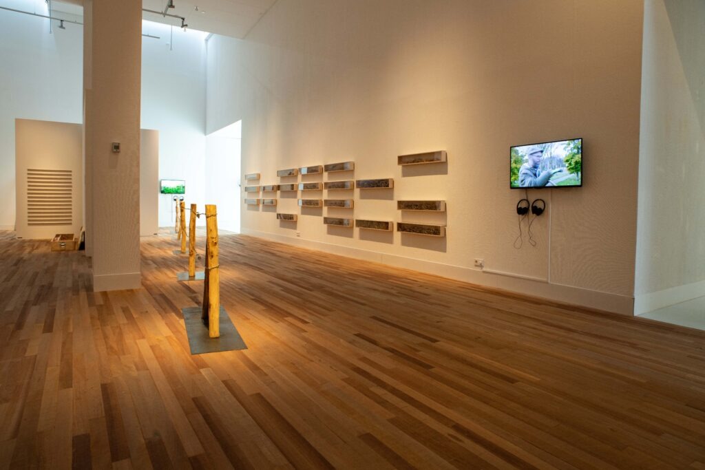 Foto’s van de zaaloverzichten van de solotentoonstelling Uit het leven van een vlinder.